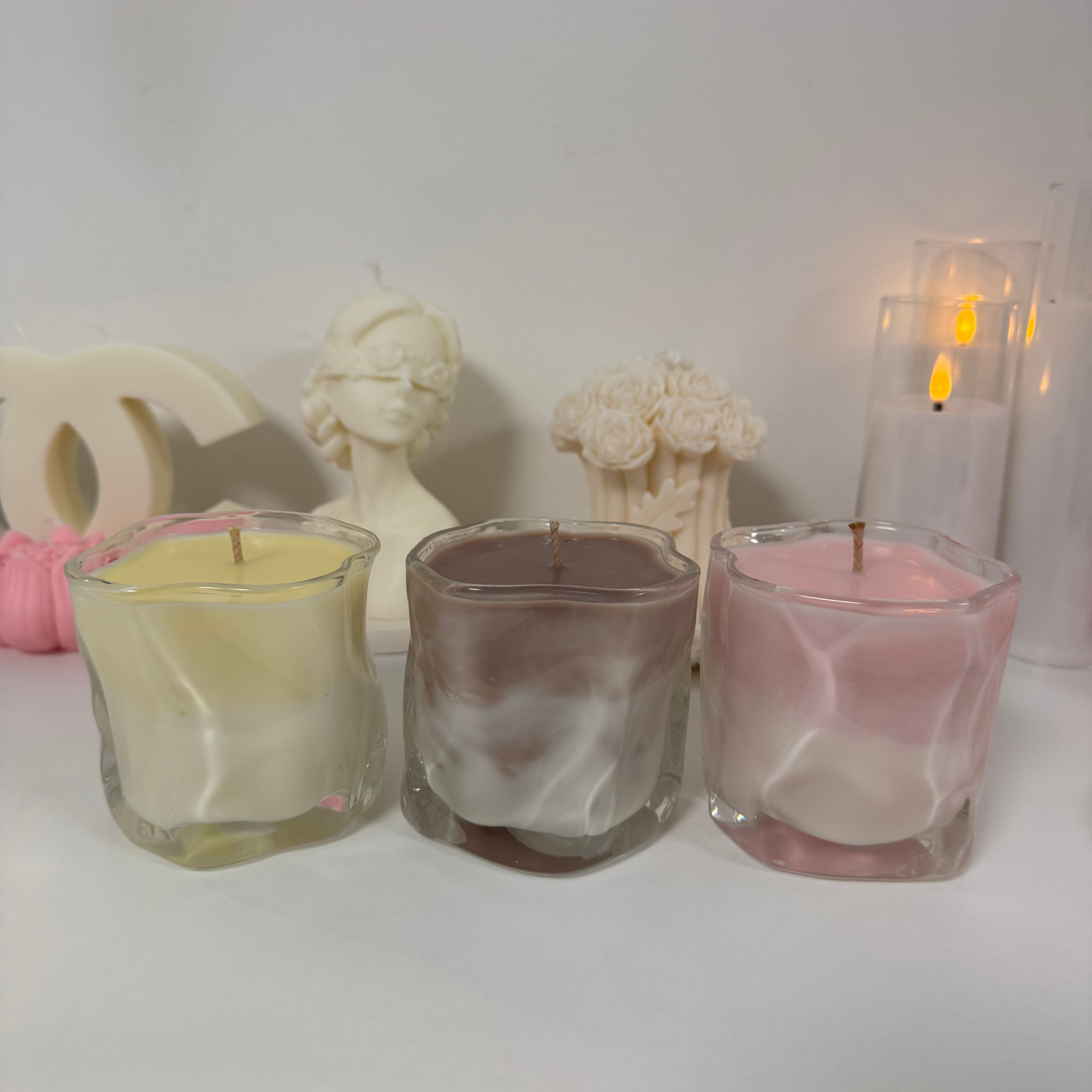 Handgefertigte Kerzen aus hochwertigem Bio-Sojawachs für ein luxuriöses und umweltfreundliches Ambiente.