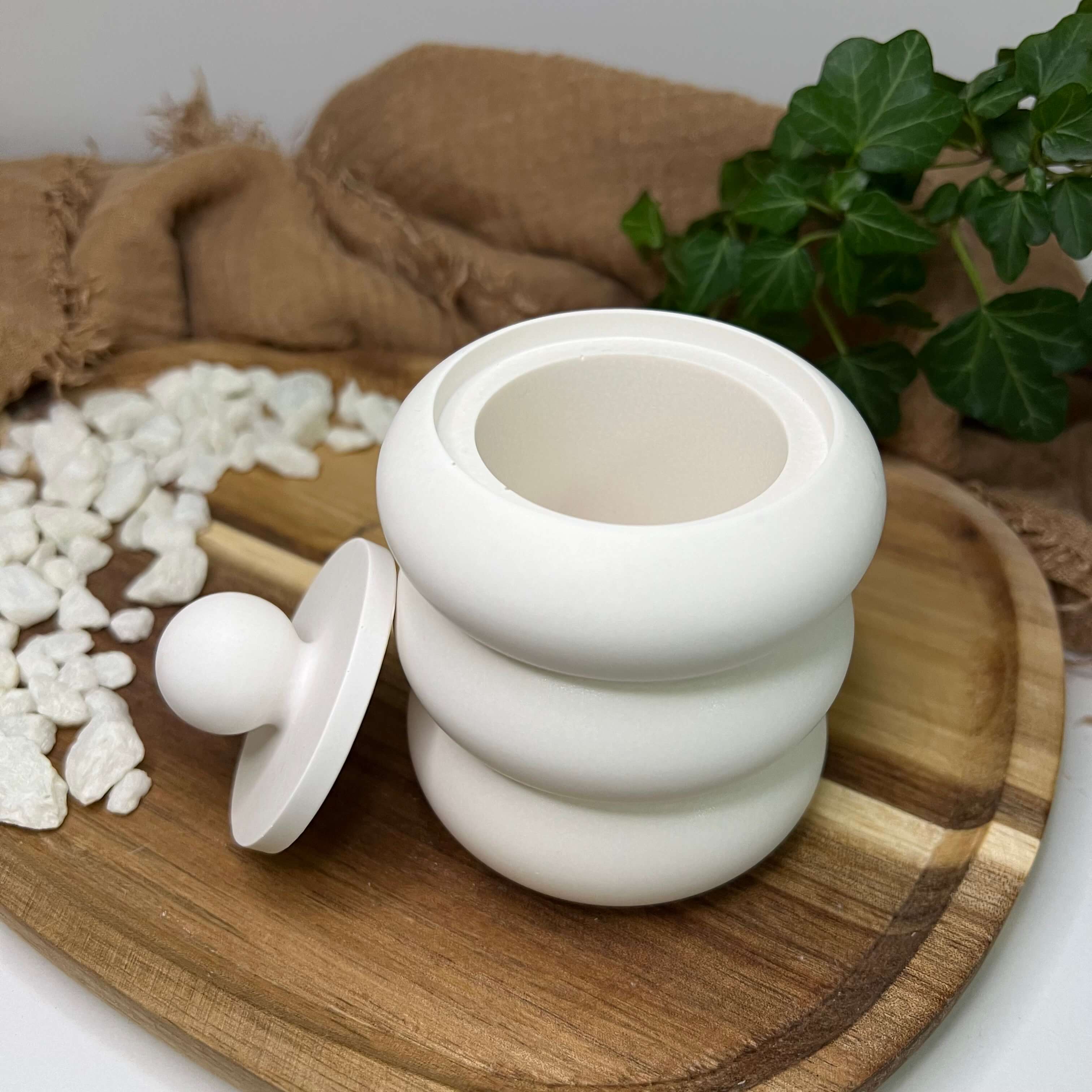 Entdecke die zeitlose Eleganz unseres handgefertigten "Celestial Bubble Elegance" – einem wahrhaft einzigartigen Jesmonite-Behälter, der die Schönheit in einer modernen Form einfängt. Dieses Kunstwerk ist nicht nur ein Aufbewahrungsbehälter, sondern ein ästhetisches Statement.