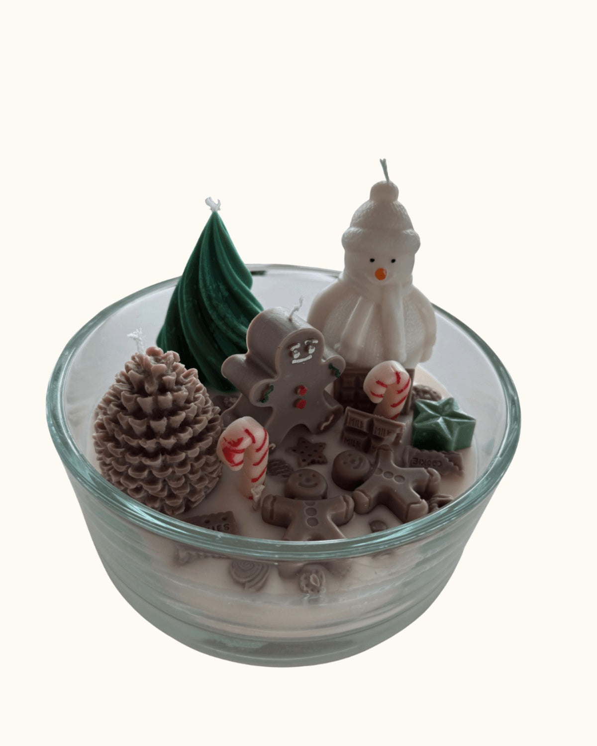 Willkommen im Hänsel & Gretel Wonderland – einer handgefertigten Winterkerze, die den Zauber des berühmten Märchens aufgreift. Zwischen zartem, schneeweißem Sojawachs entsteht eine süße kleine Welt voller Magie: ein fröhlicher Schneemann, ein Tannenbaum, detailverliebte Lebkuchenfiguren und unzählige kleine Schokoladen und Süßigkeiten.